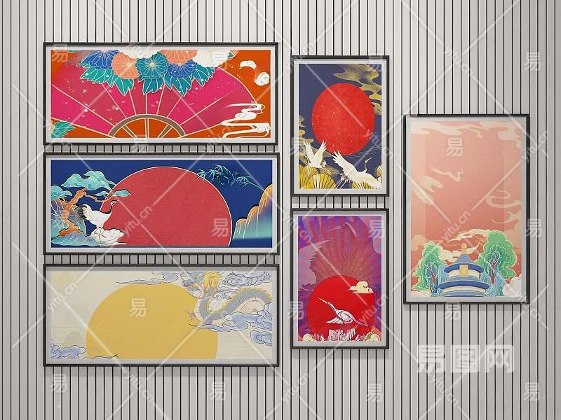 新中式国潮装饰画3D模型下载