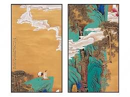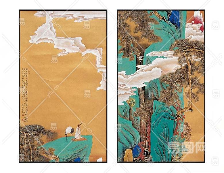 中式传统经典吉祥山水图案挂画组合3D模型下载