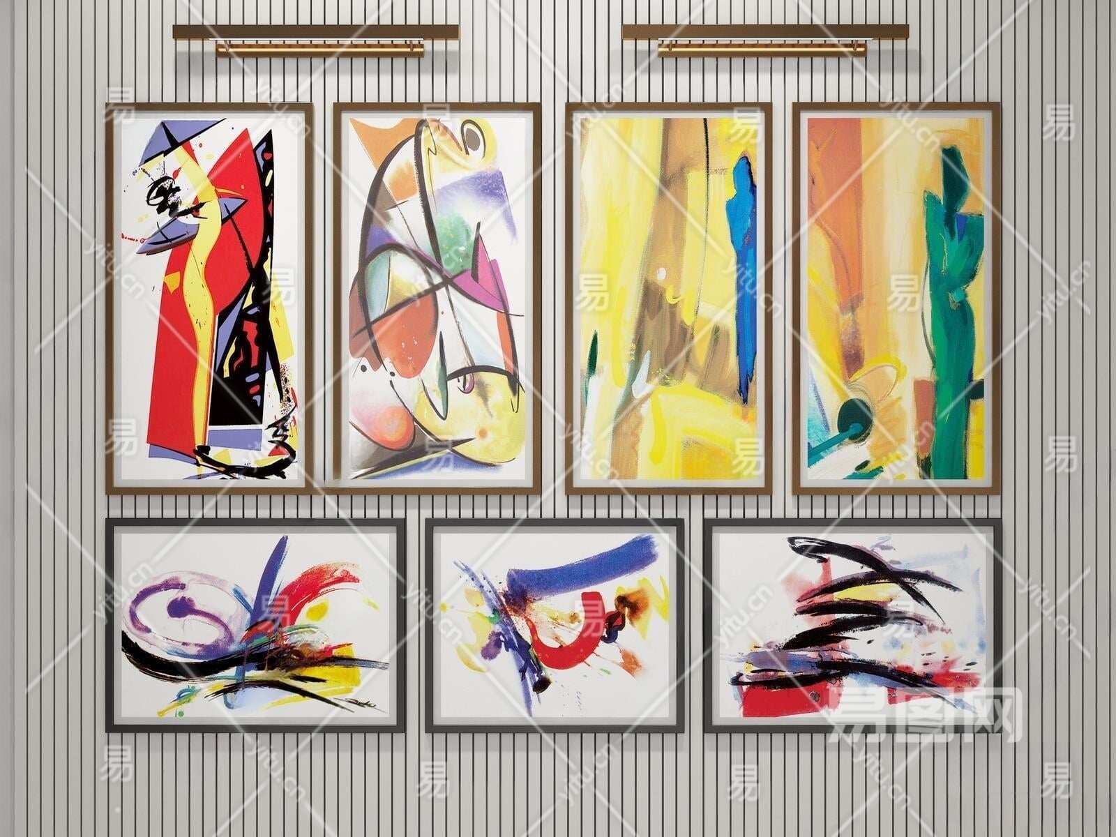 现代艺术抽象装饰画3D模型下载