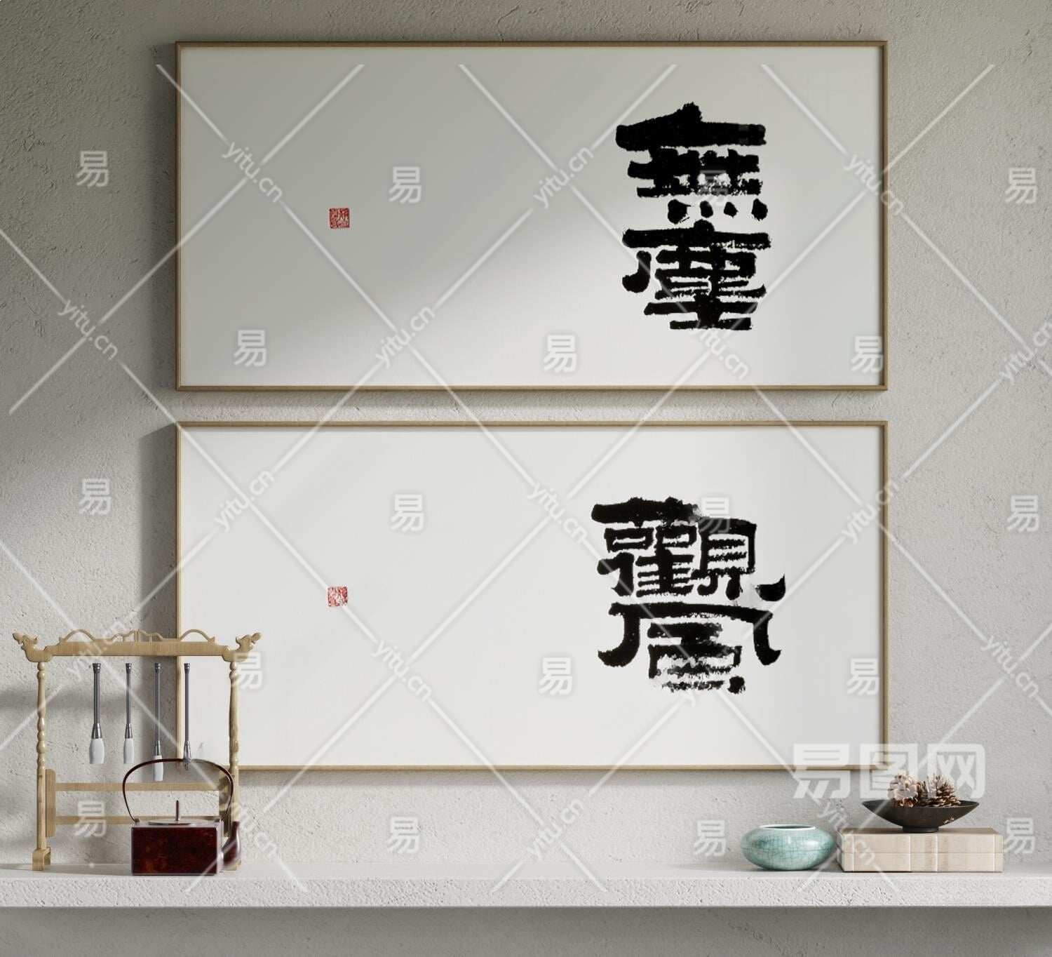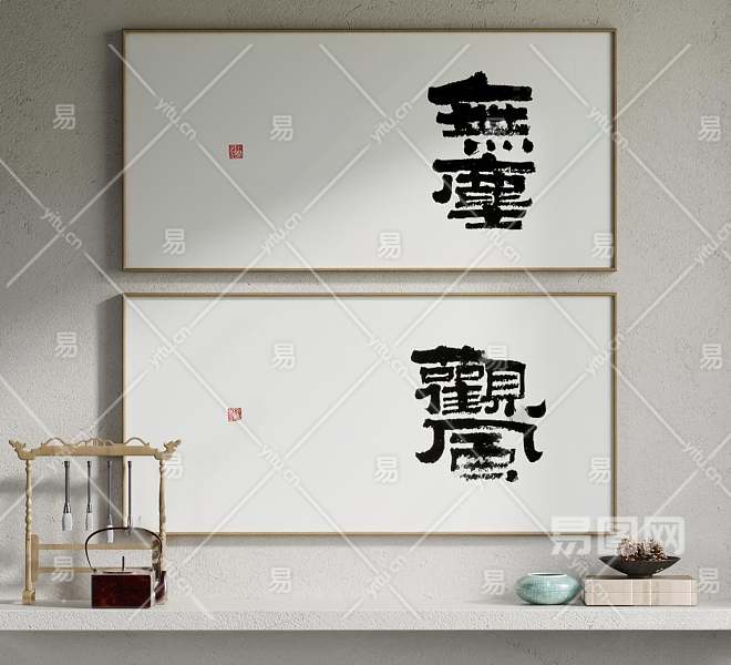 新中式书法字装饰画3D模型下载