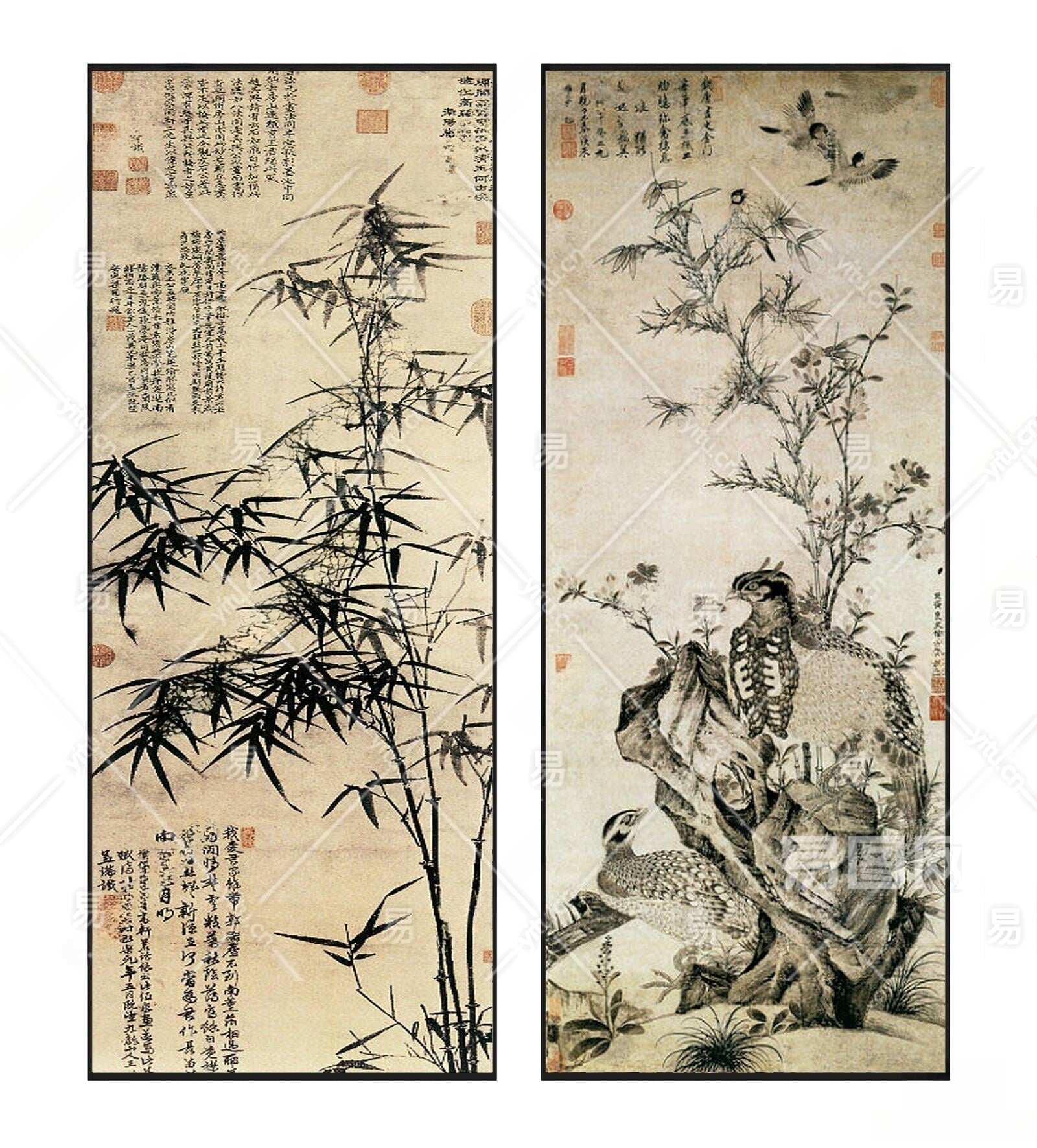 中式禅意水墨竹子飞鸟图案挂画组合3D模型下载