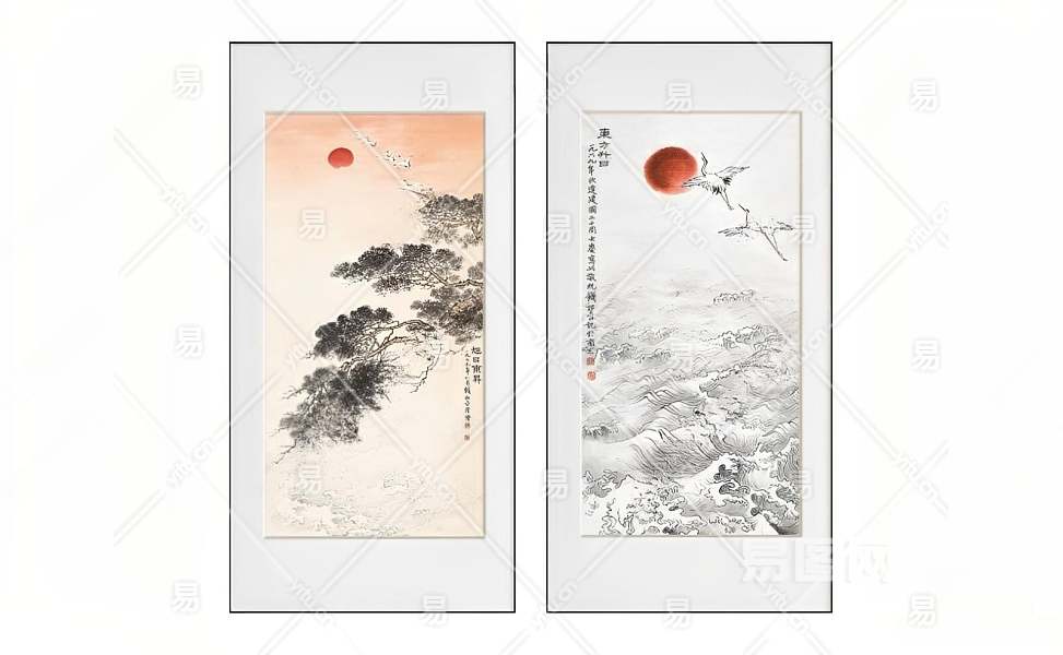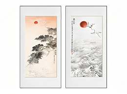 新中式禅意轻奢山水风景装饰画3D模型下载