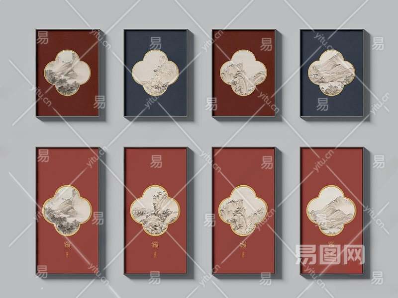 中式挂画3D模型下载
