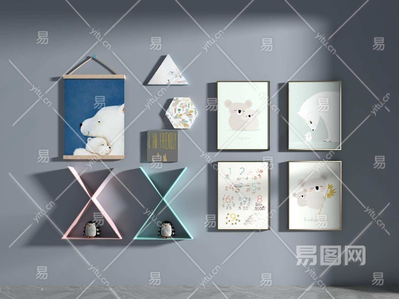 现代儿童装饰画3D模型下载