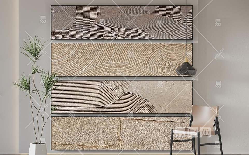侘寂风肌理长条挂画3D模型下载