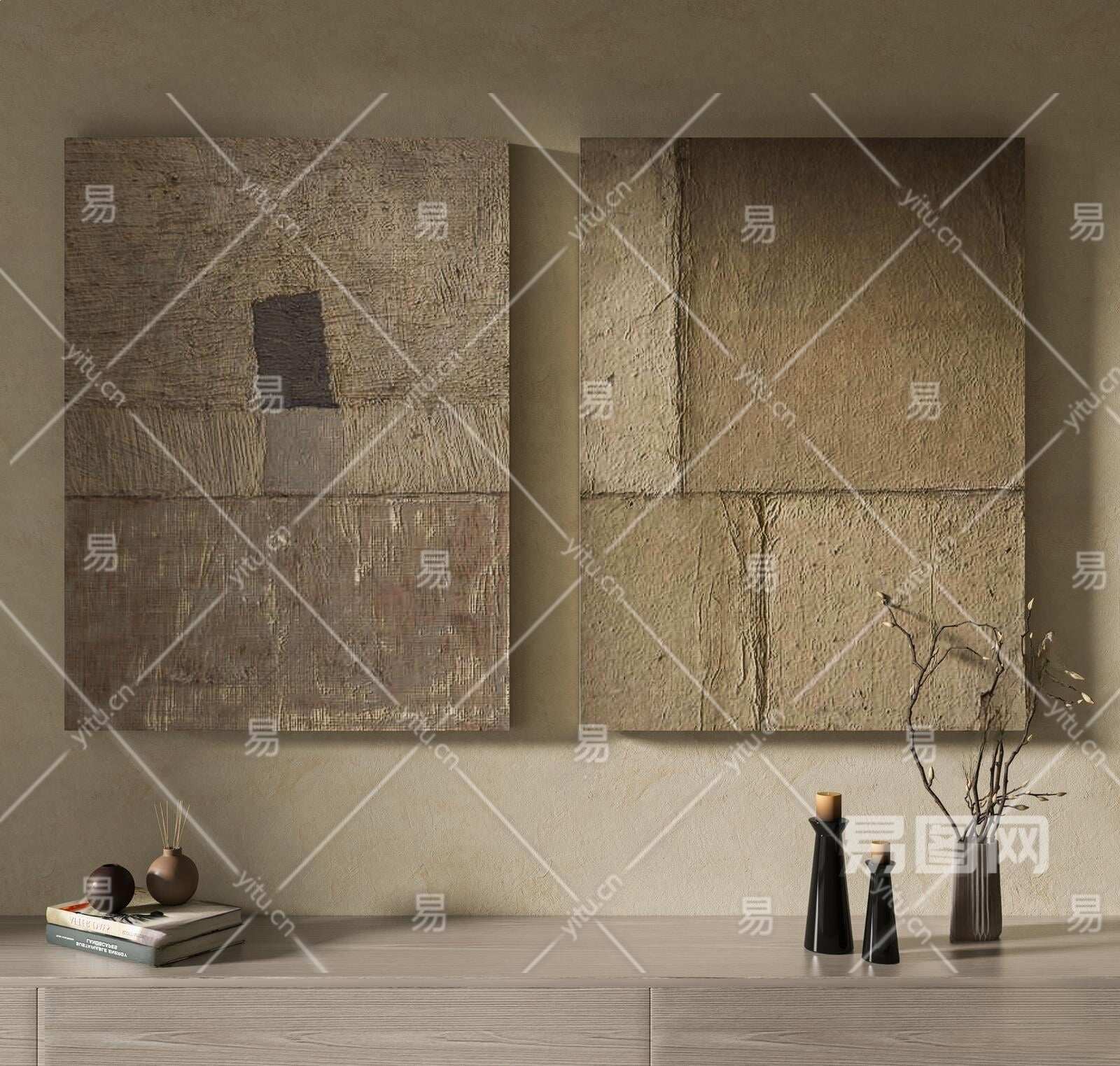 侘寂装饰画3D模型下载