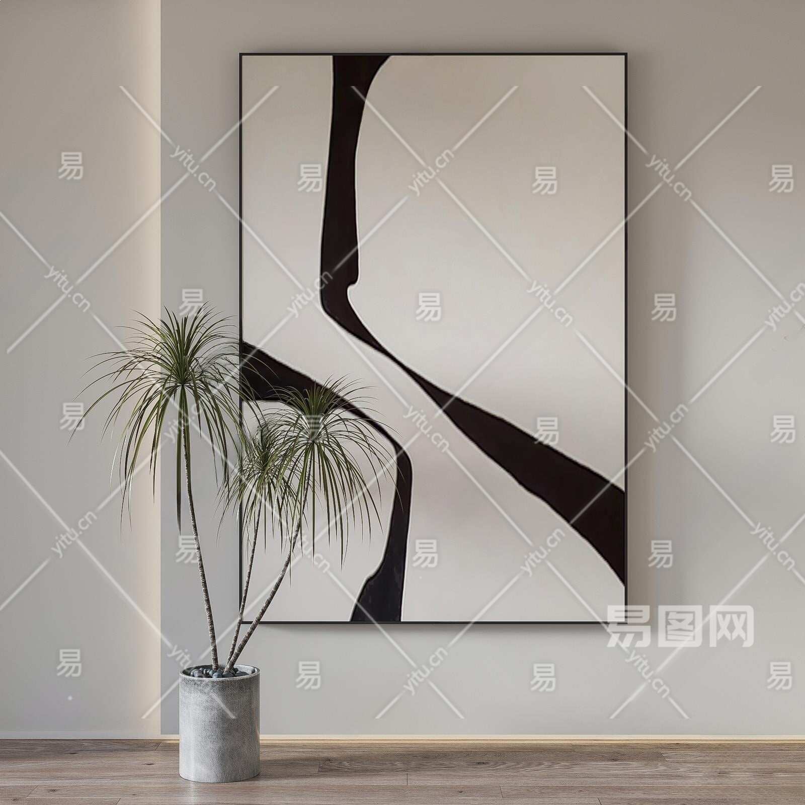 现代黑白挂画3D模型下载