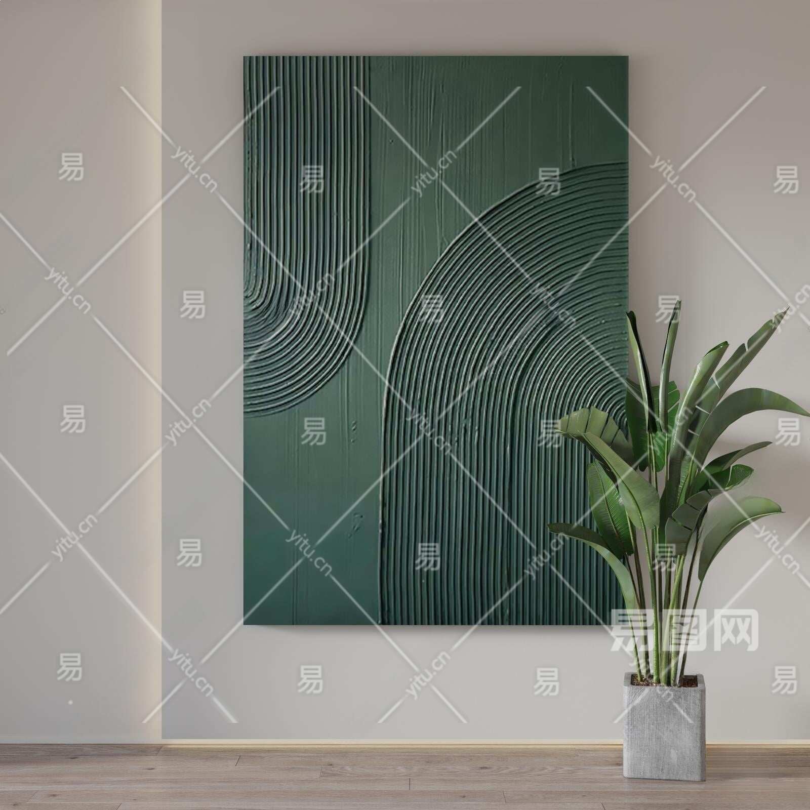 现代绿色肌理挂画3D模型下载