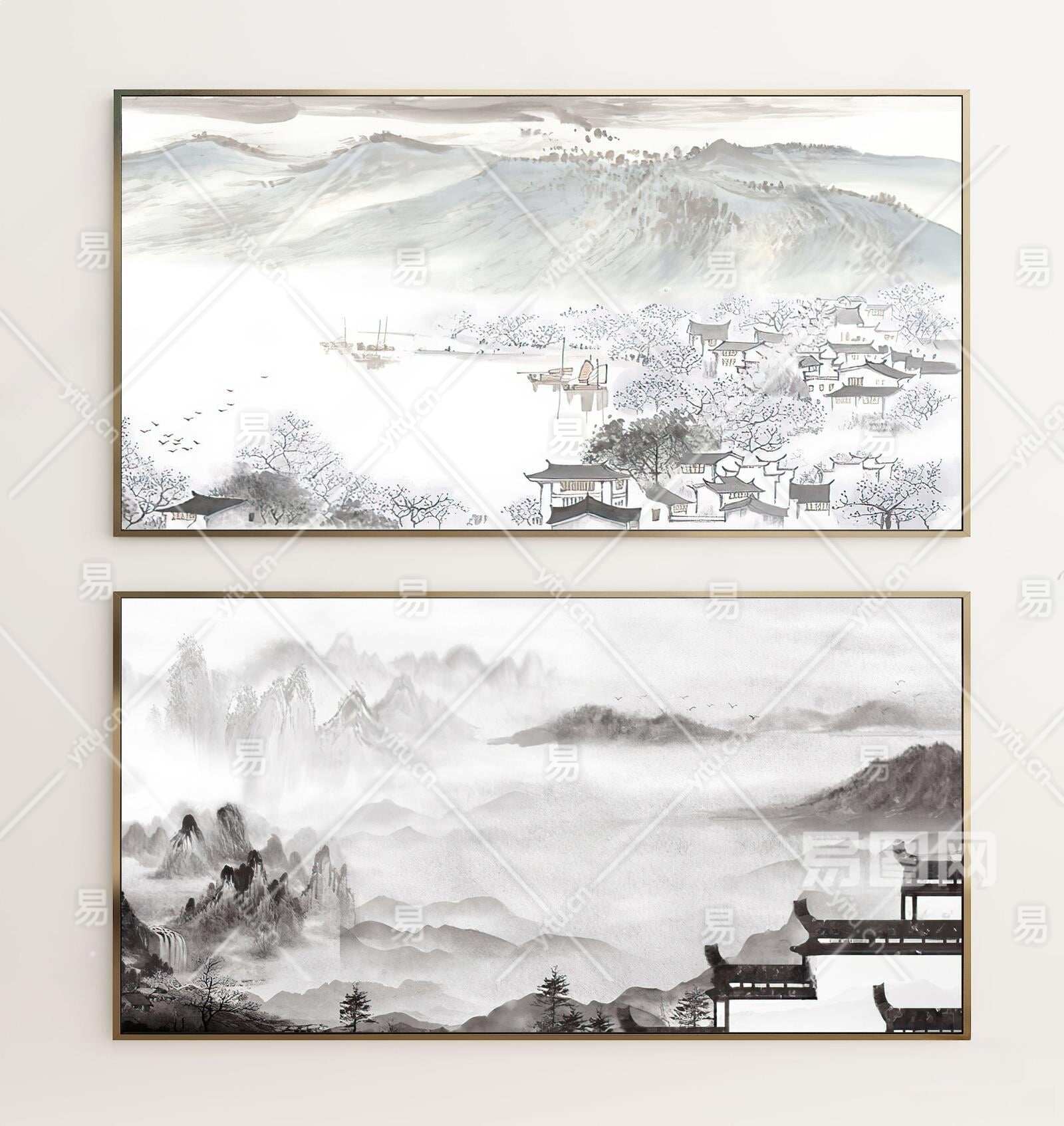新中式风格挂画3D模型下载