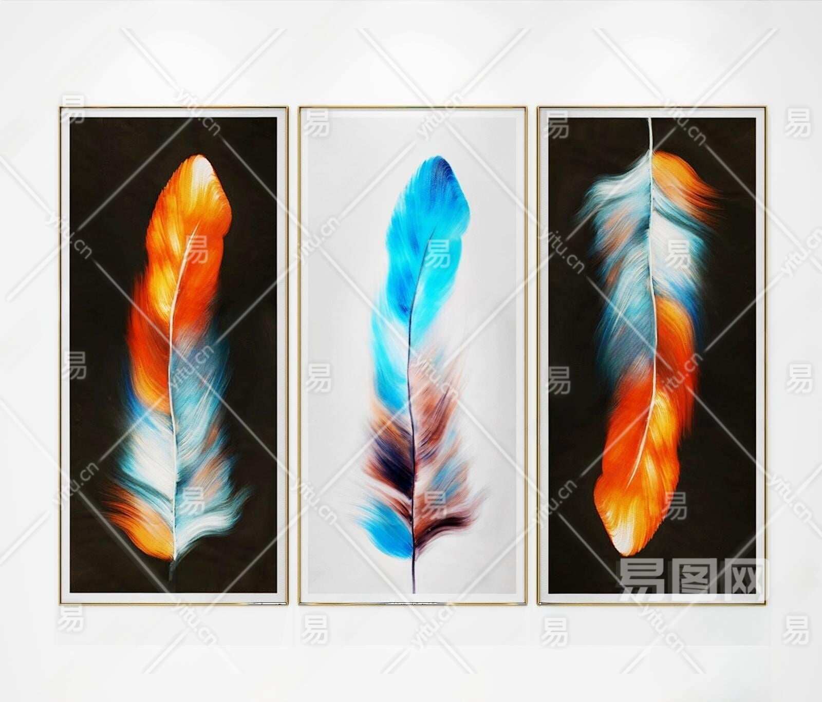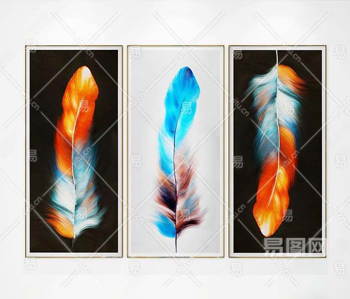 现代羽毛装饰挂画3D模型下载