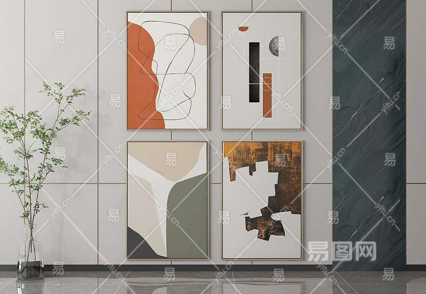 现代装饰画挂画3D模型下载