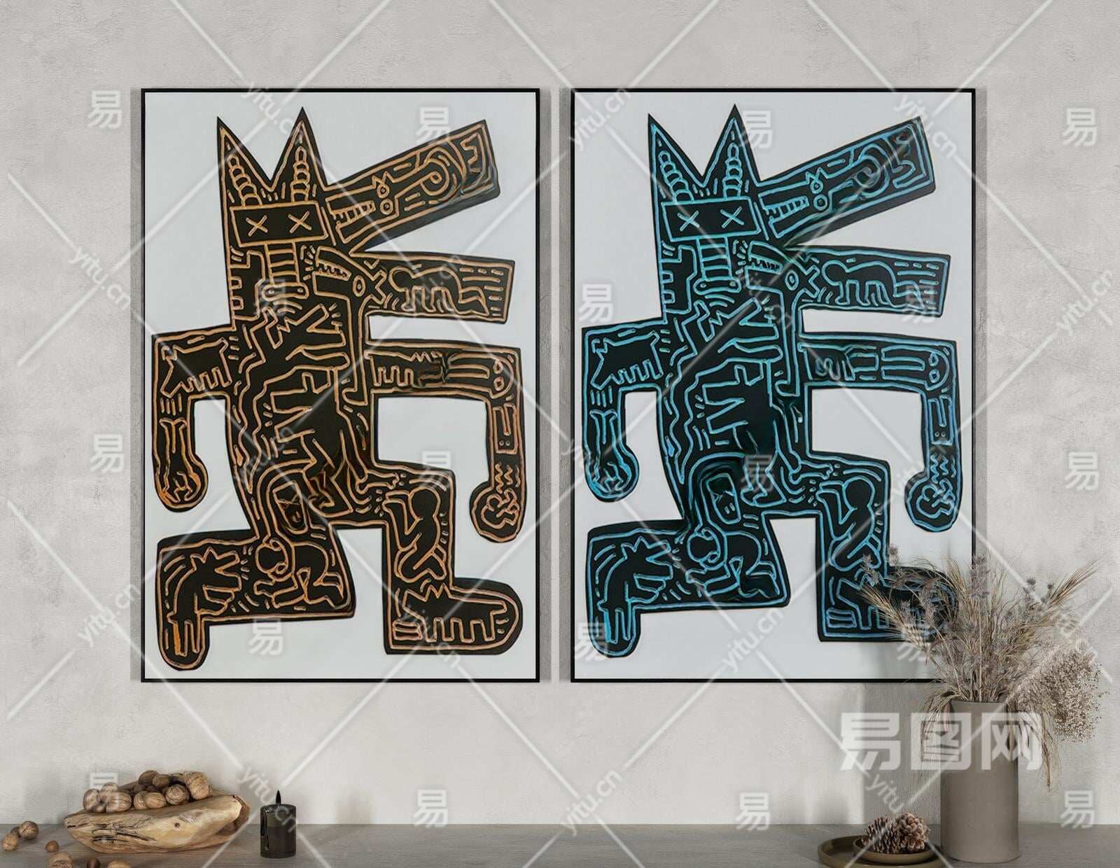 现代抽象装饰画3D模型下载