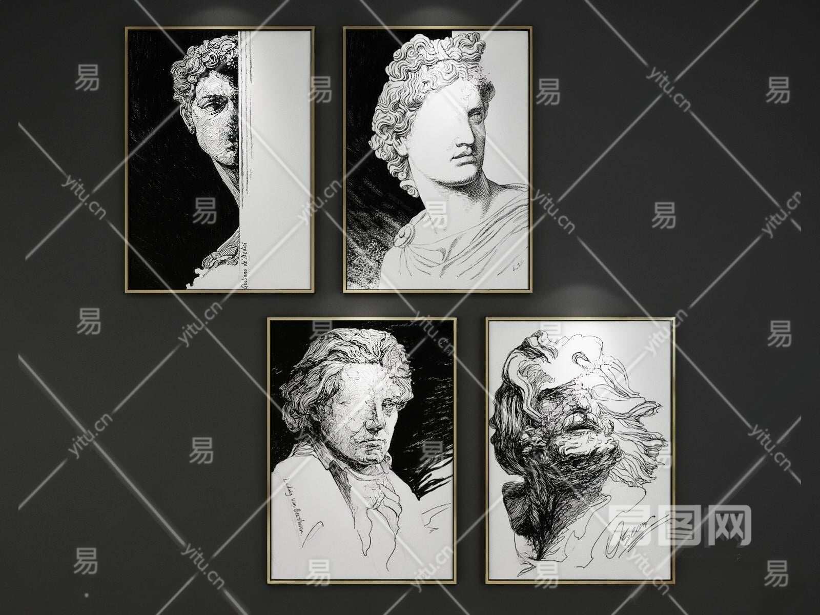 当前的位置:首页 > 3D模型 > 陈设饰品 > 挂画 > 现代抽象石膏像大卫黑白装饰挂画3D模型下载