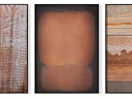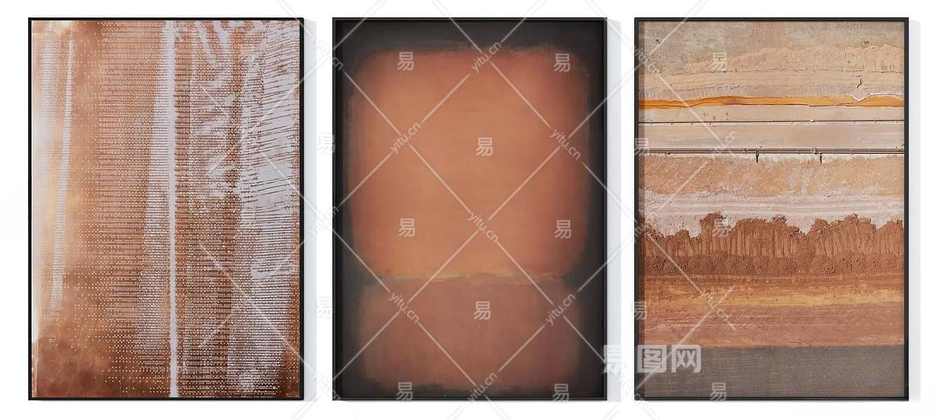 现代高级红咖色抽象图案挂画组合3D模型下载