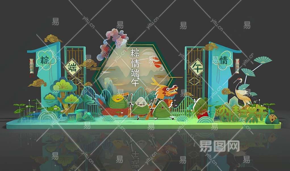 新中式端午节美陈3D模型下载