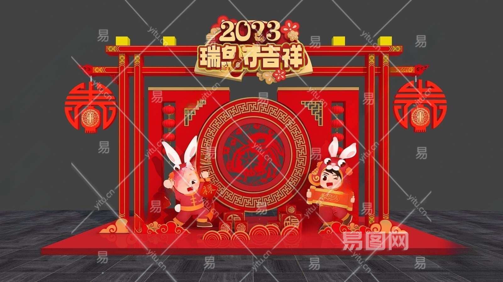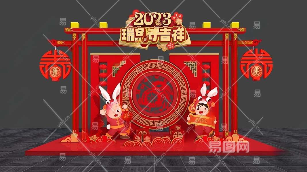现代兔年美陈3D模型下载