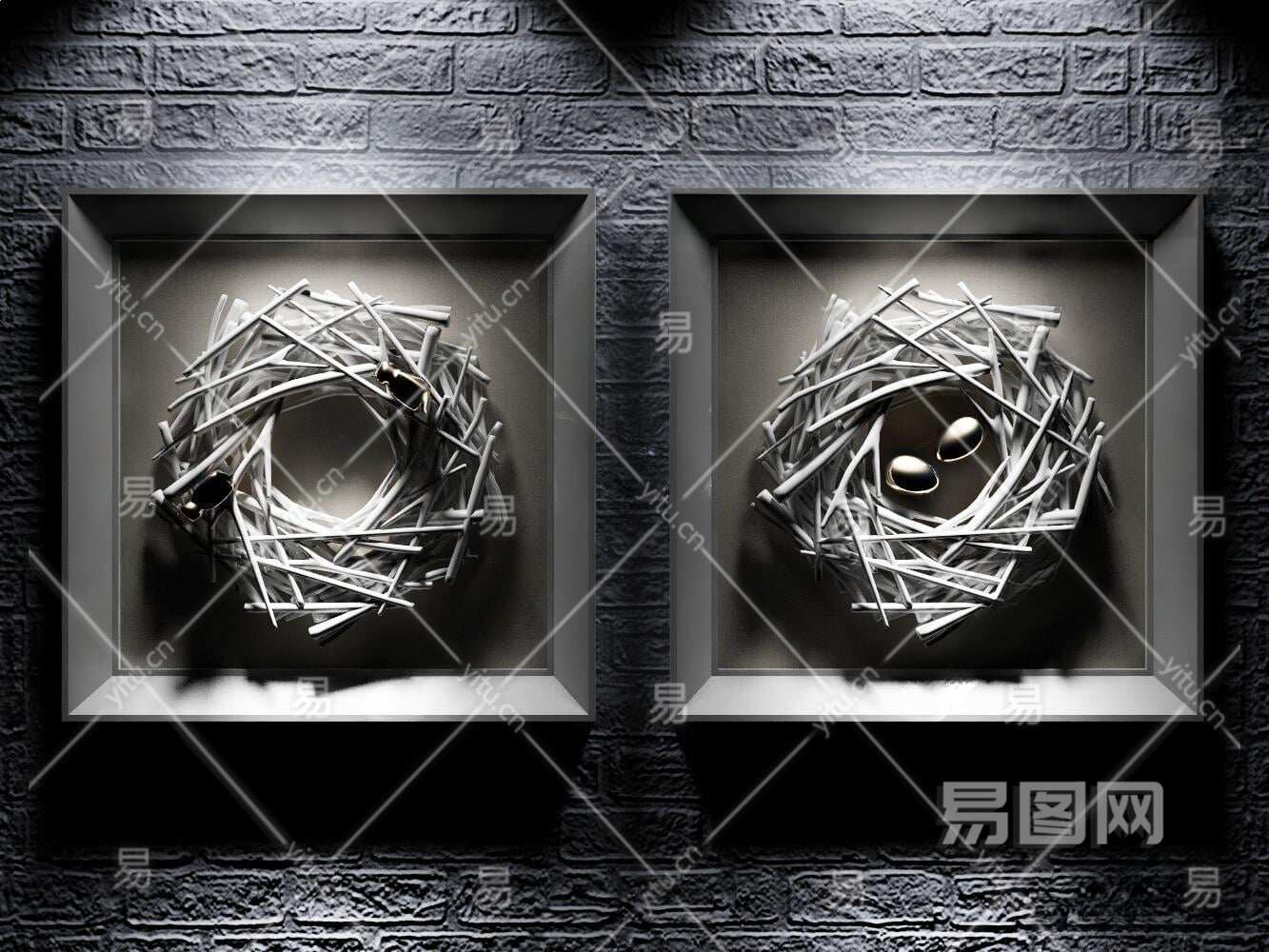现代立体墙饰挂件3D模型下载