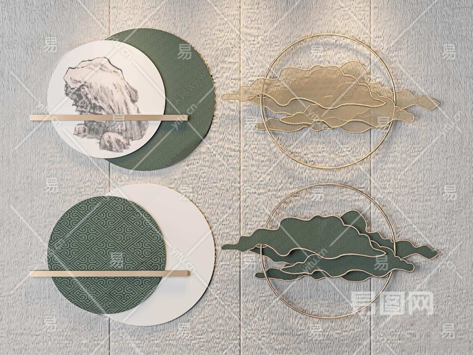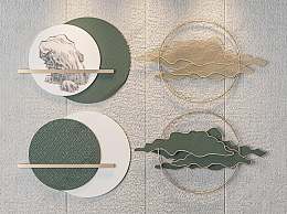 新中式金属墙饰挂件3D模型下载