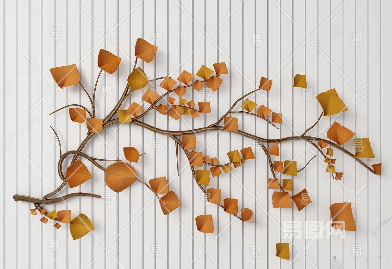 现代树枝墙饰挂件3D模型下载