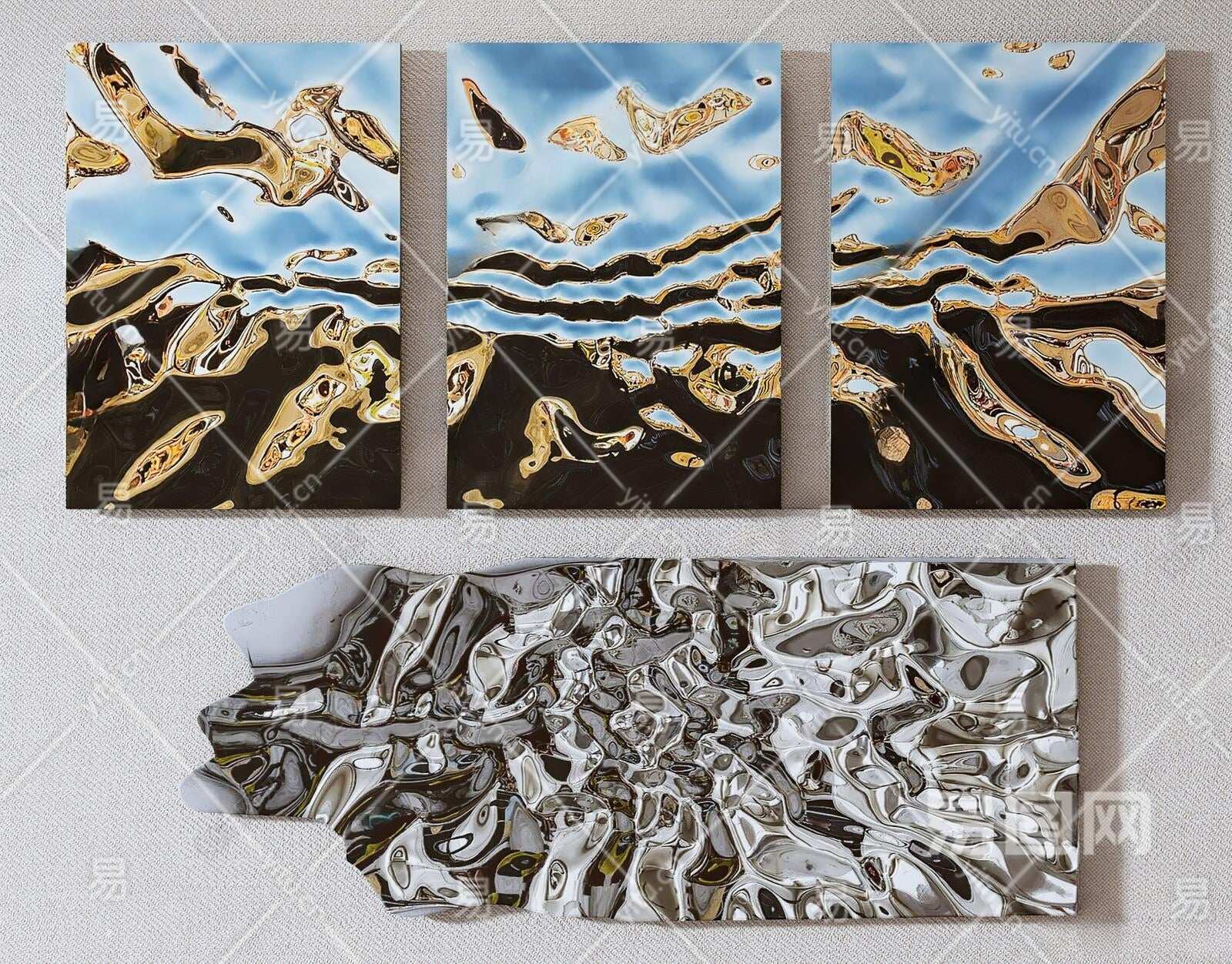 现代金属水纹墙饰挂件3D模型下载