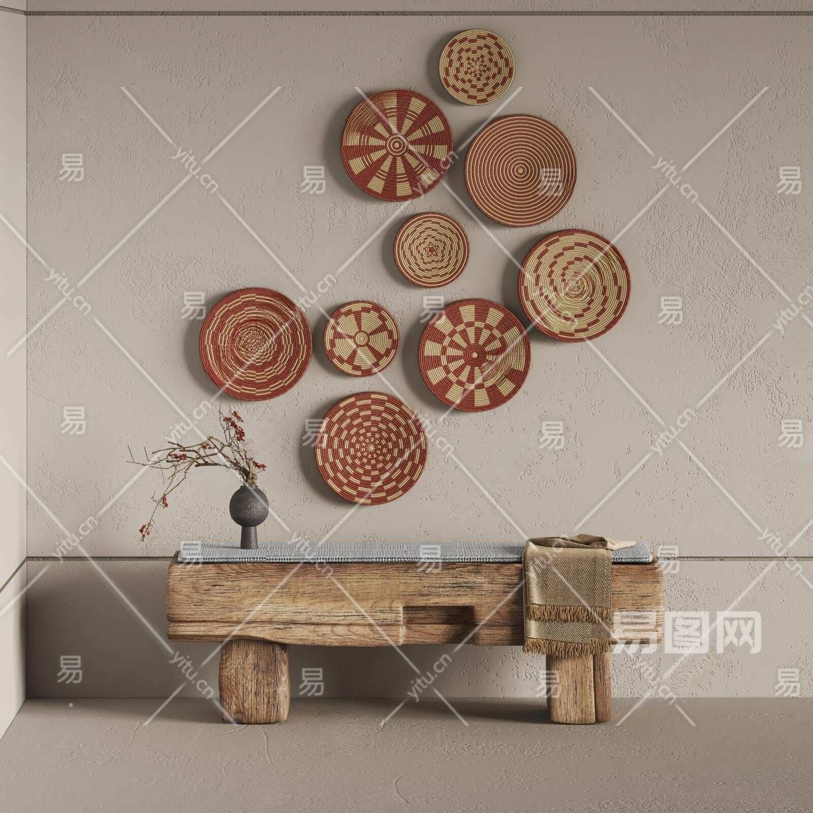 侘寂墙饰挂件3D模型下载