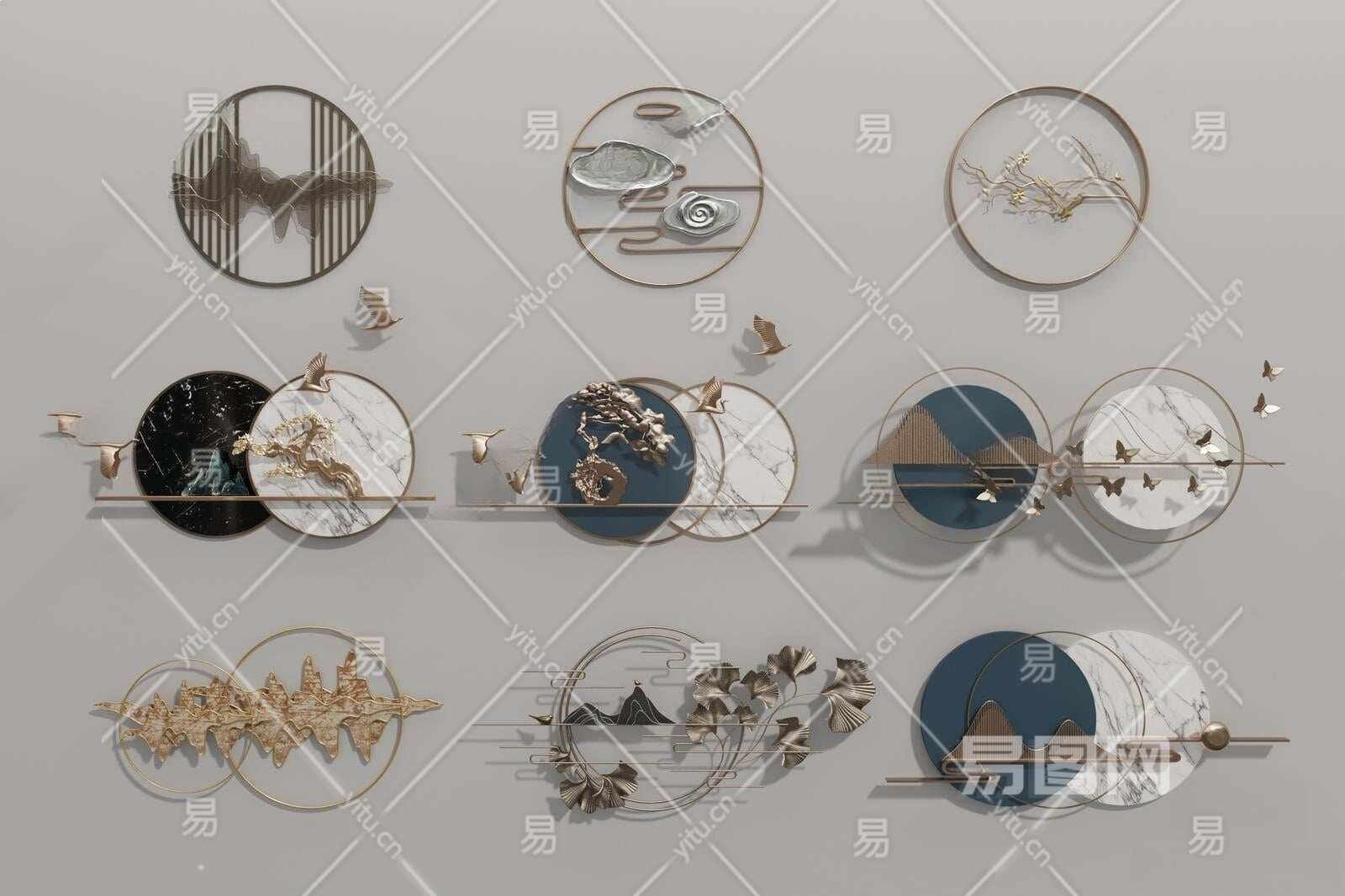新中式墙饰挂件3D模型下载