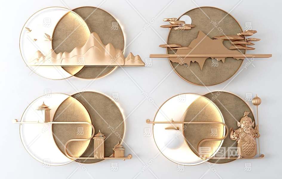 新中式墙饰挂件3D模型下载