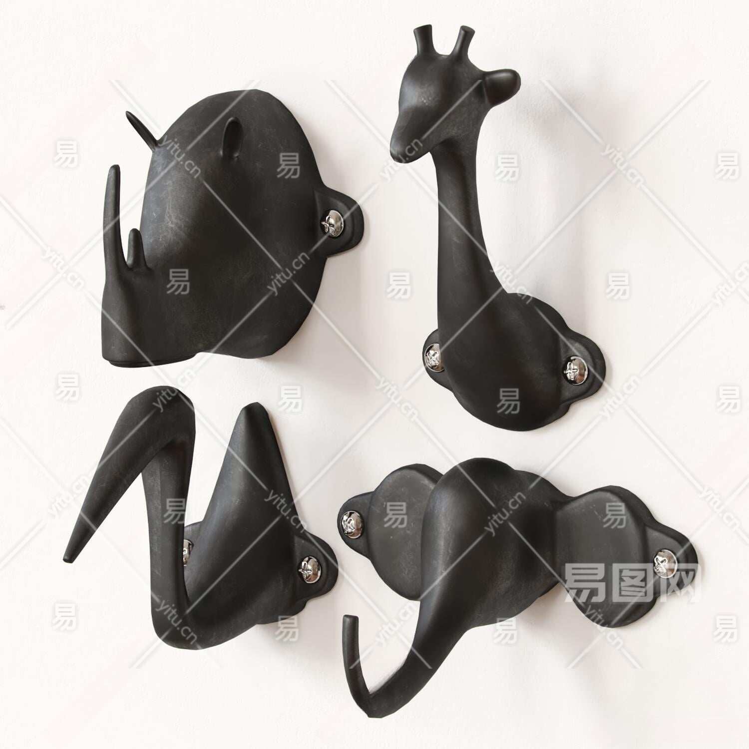 现代墙面挂钩3D模型下载