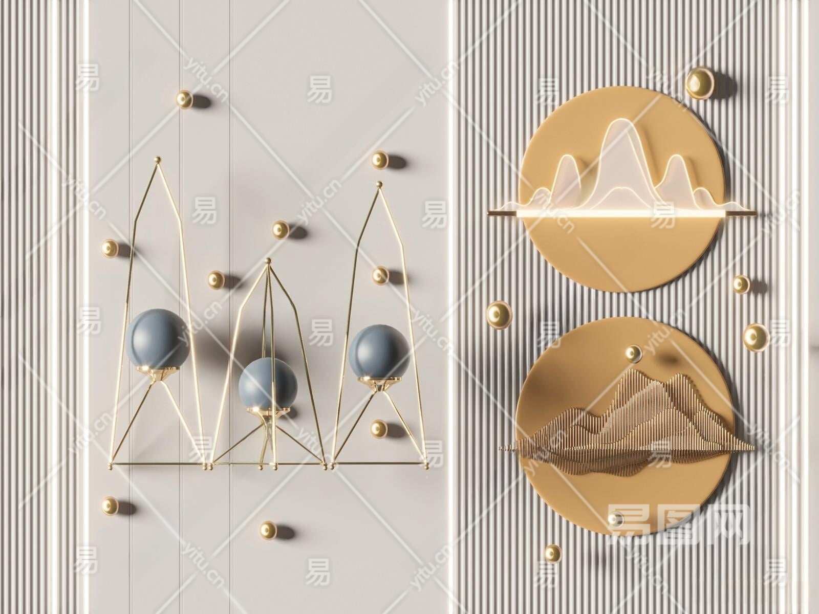 现代墙饰3D模型下载