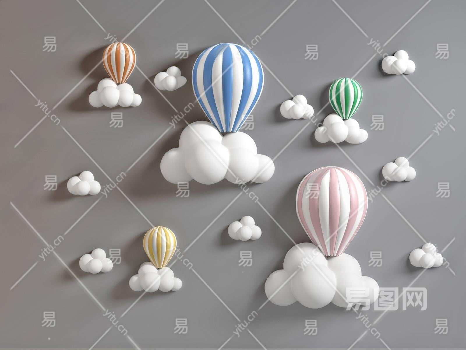 现代儿童热气球墙饰挂件3D模型下载