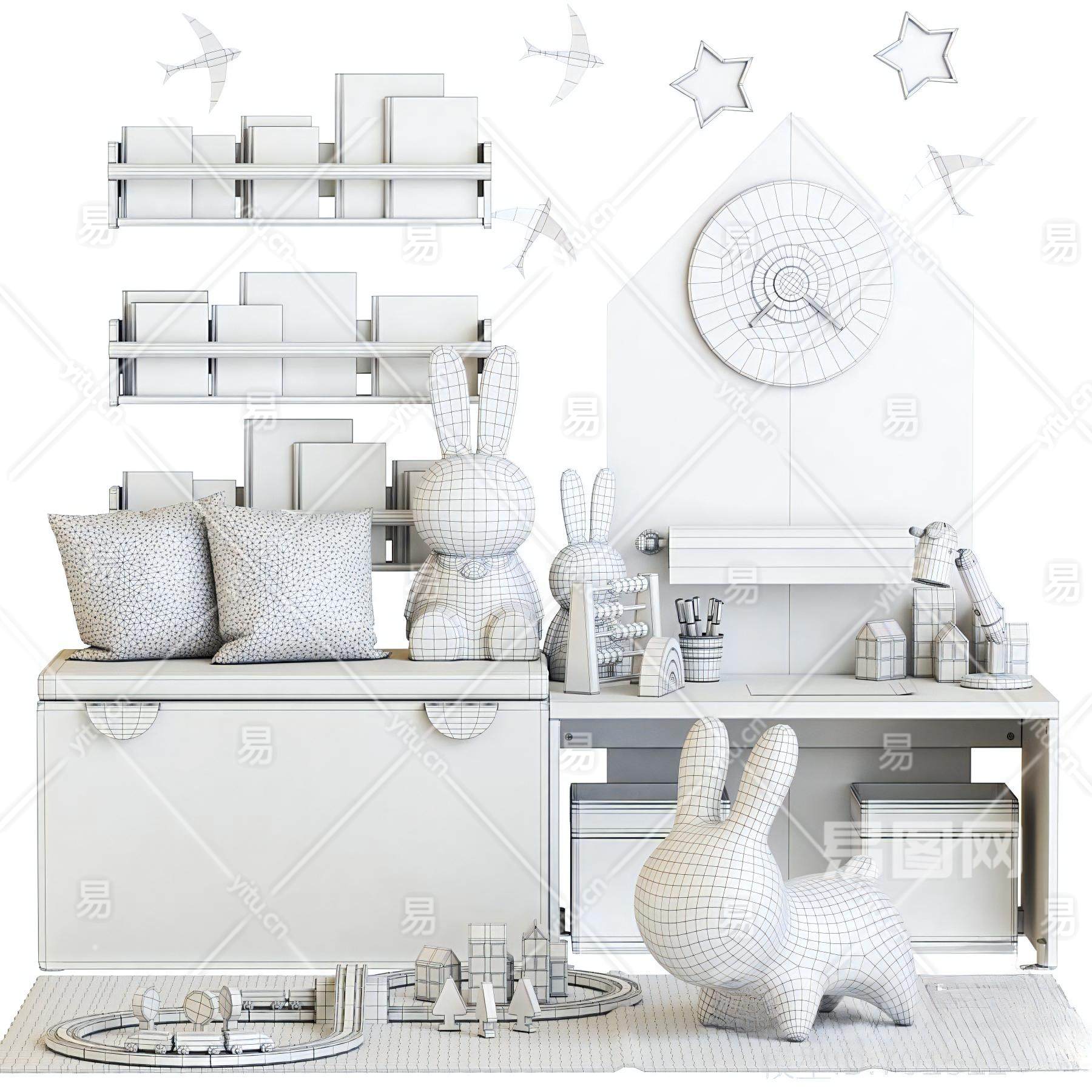 当前的位置:首页 > 3D模型 > 陈设饰品 > 玩具 > 北欧儿童长凳挂壁式书架玩具