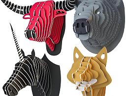 现代胶合板墙饰 纸模 动物 牛头 熊头 马头 狐狸