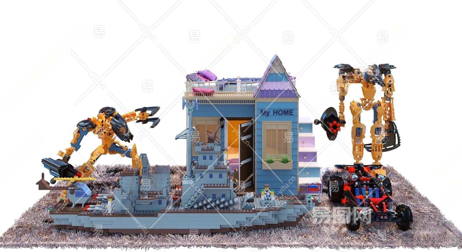 现代乐高积木3D模型下载