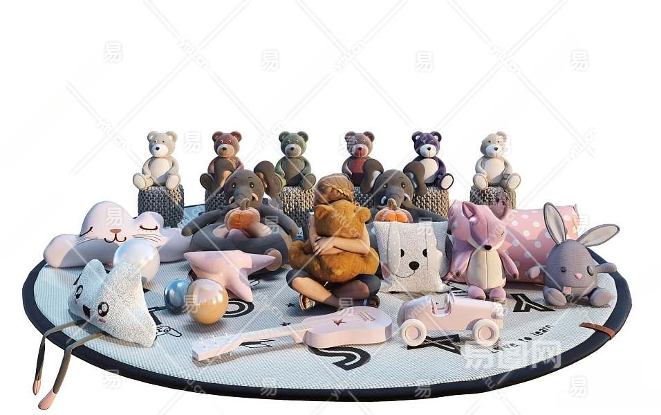 现代毛绒玩具3D模型下载