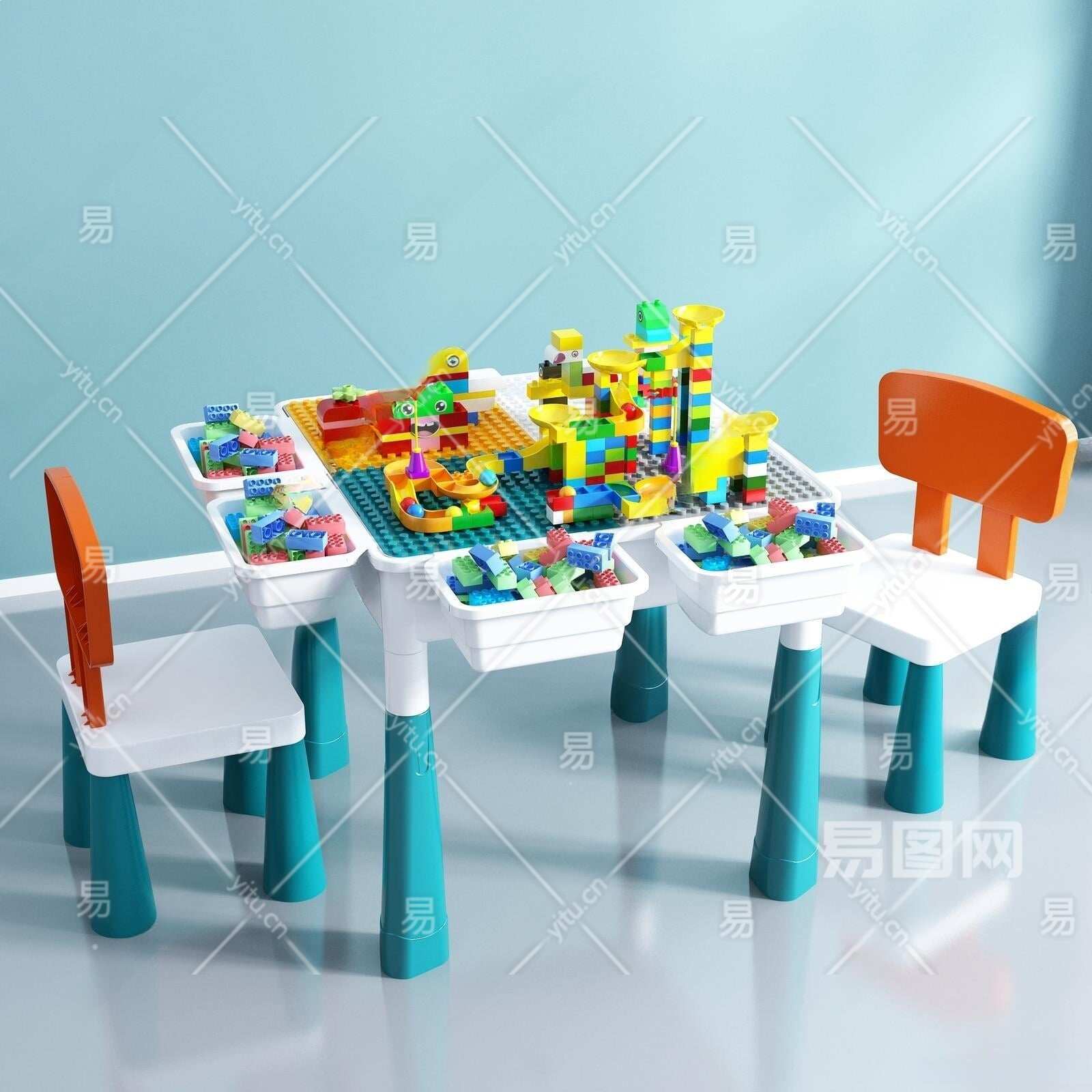 积木桌玩具组合3D模型下载