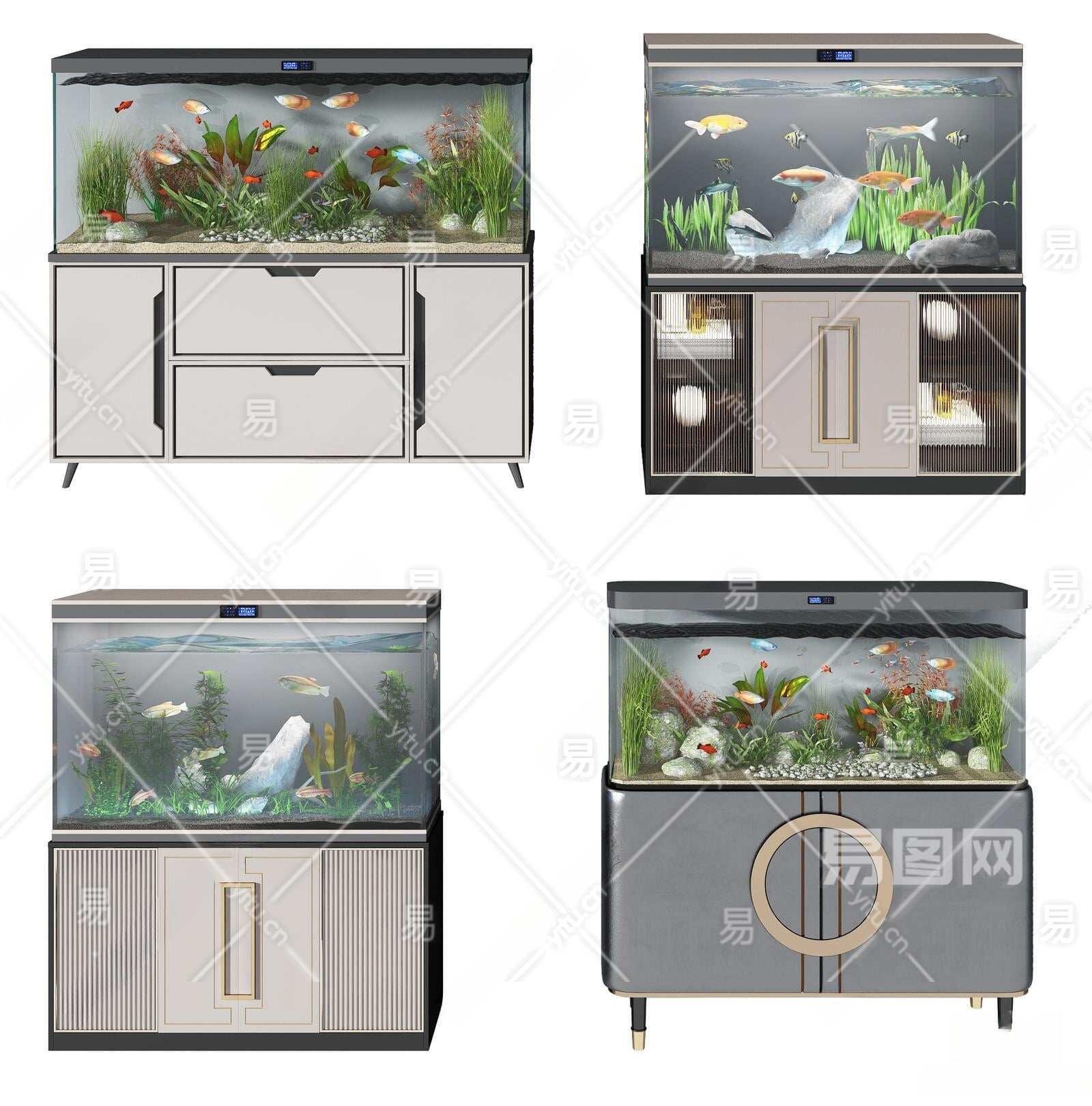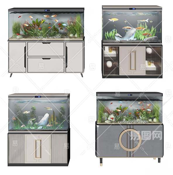 新中式鱼缸水族组合3D模型下载