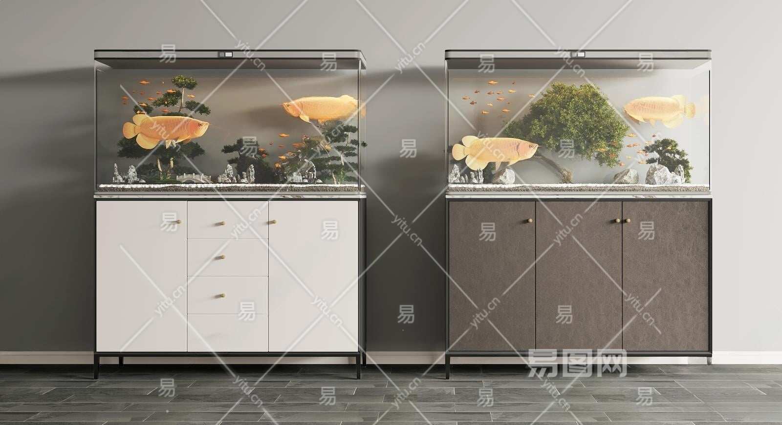现代鱼缸水族3D模型下载