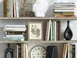 现代陈设品组合 罐子 摆件 书籍 雕塑 钟