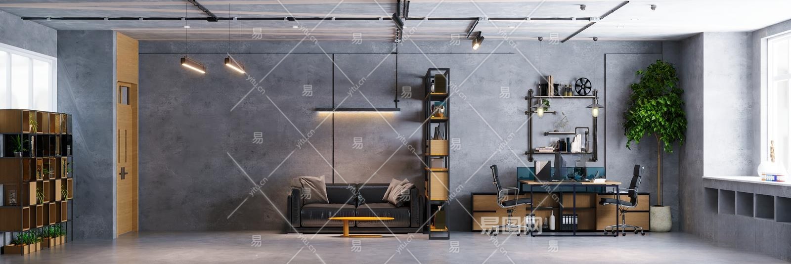 工业风公共办公室3D模型下载