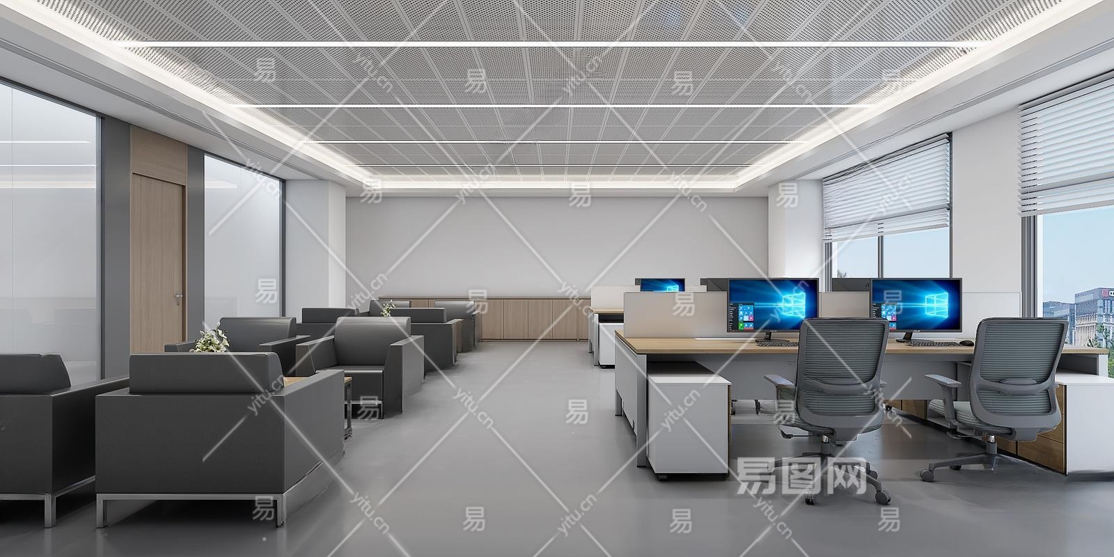 现代公共办公室3D模型下载