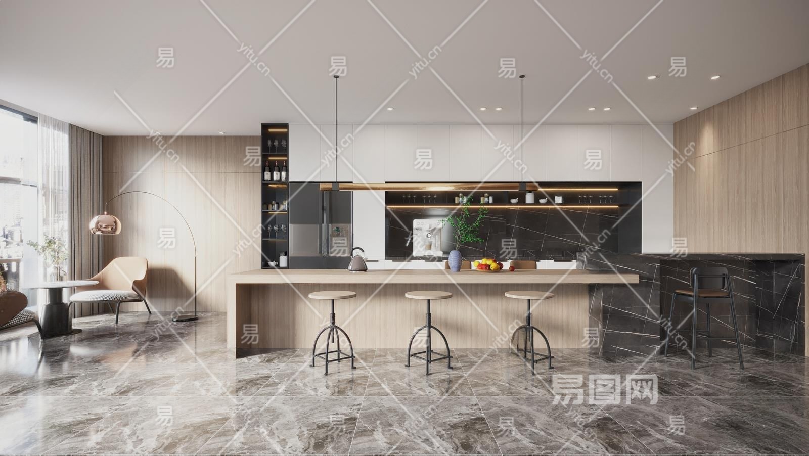 现代茶水间3D模型下载