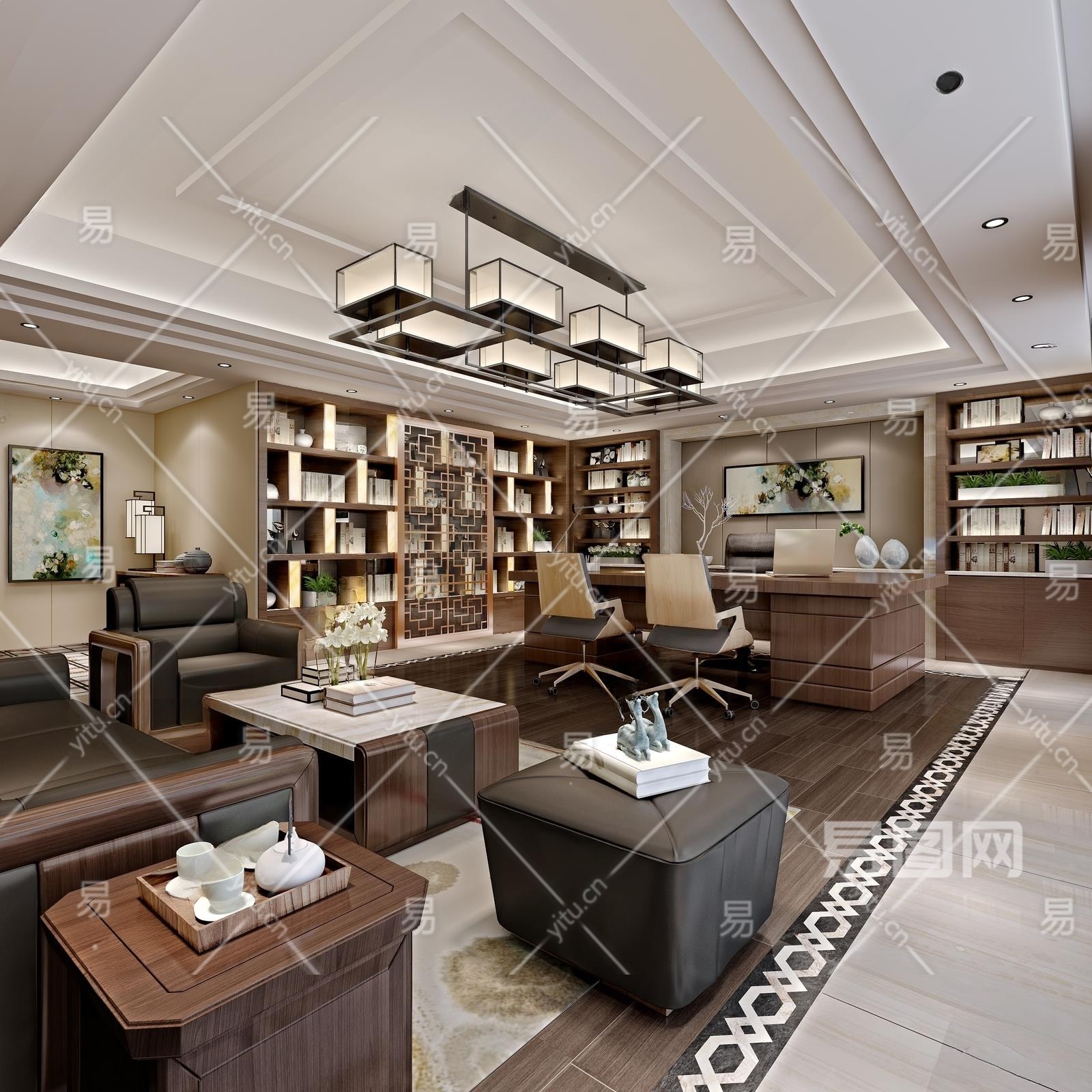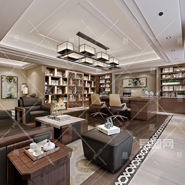 新中式经理办公室3D模型下载
