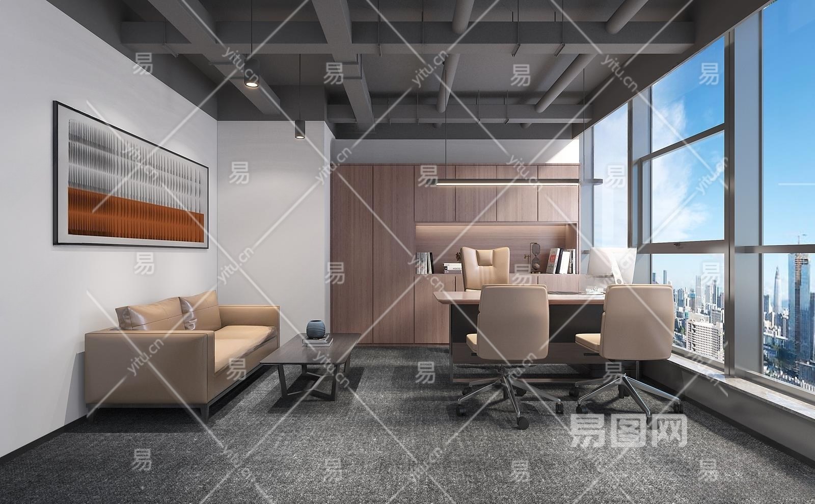 现代经理办公室3D模型下载