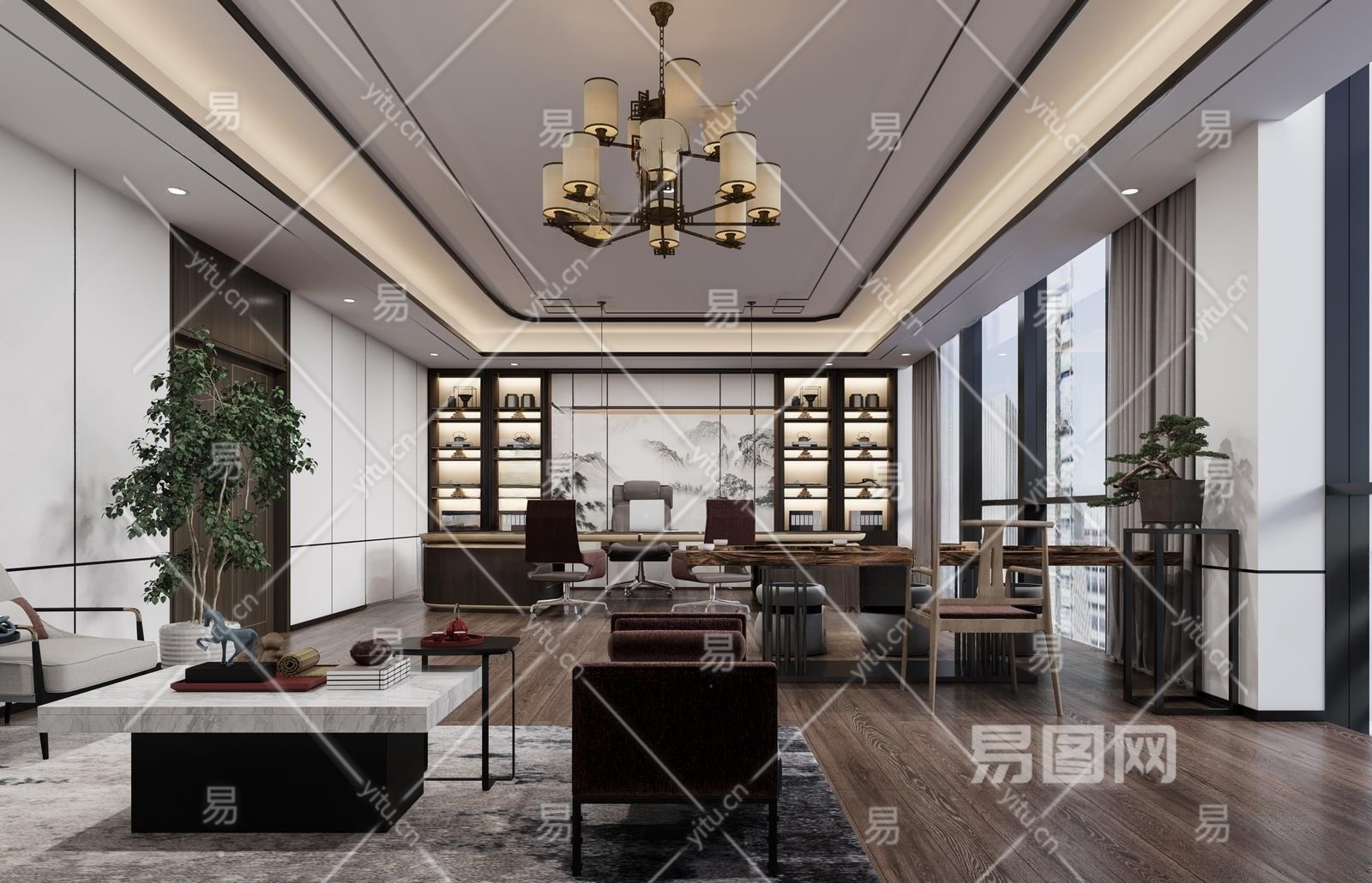 当前的位置:首页 > 3D模型 > 办公空间 > 经理室 > 新中式经理室3D模型下载