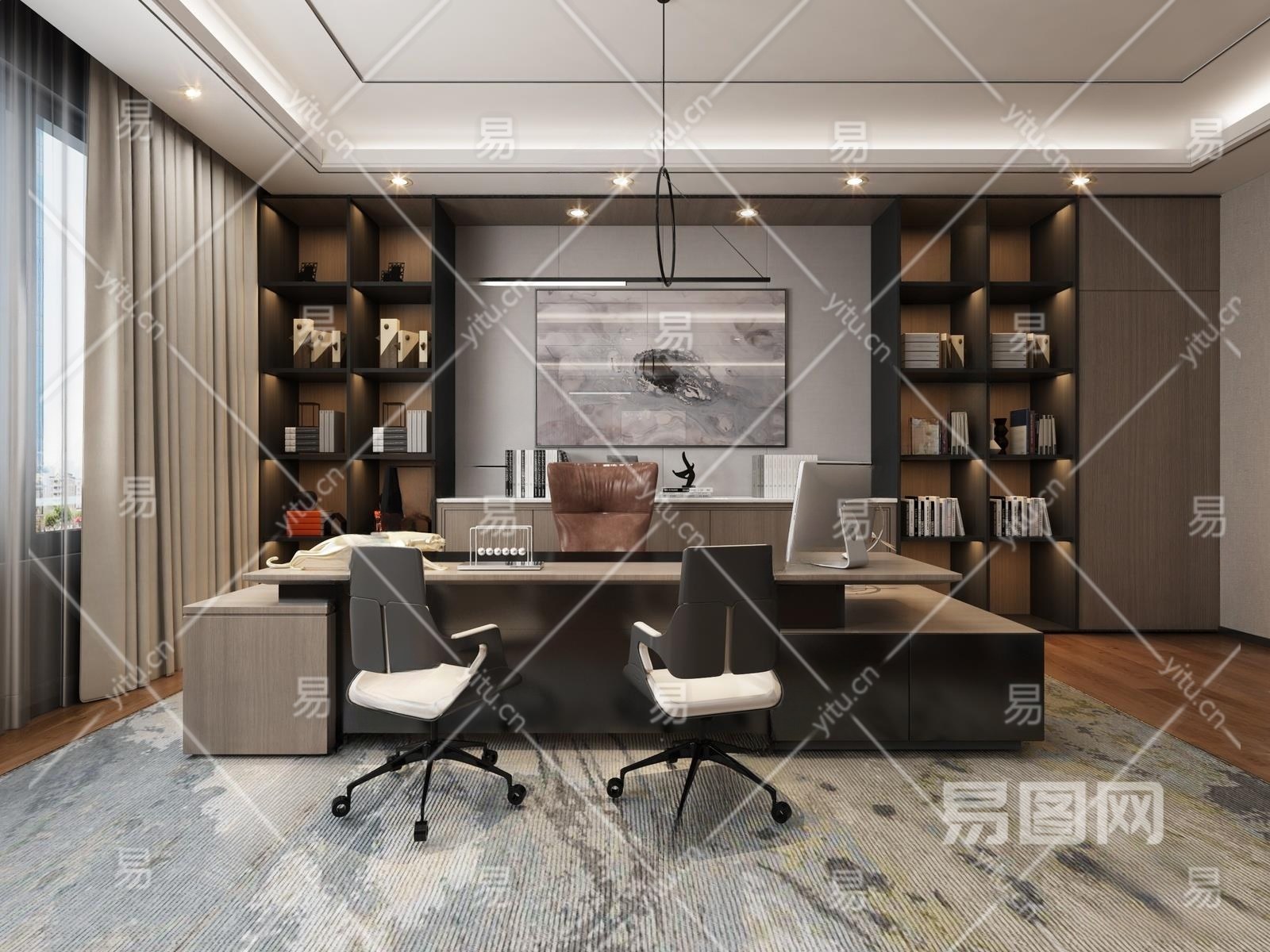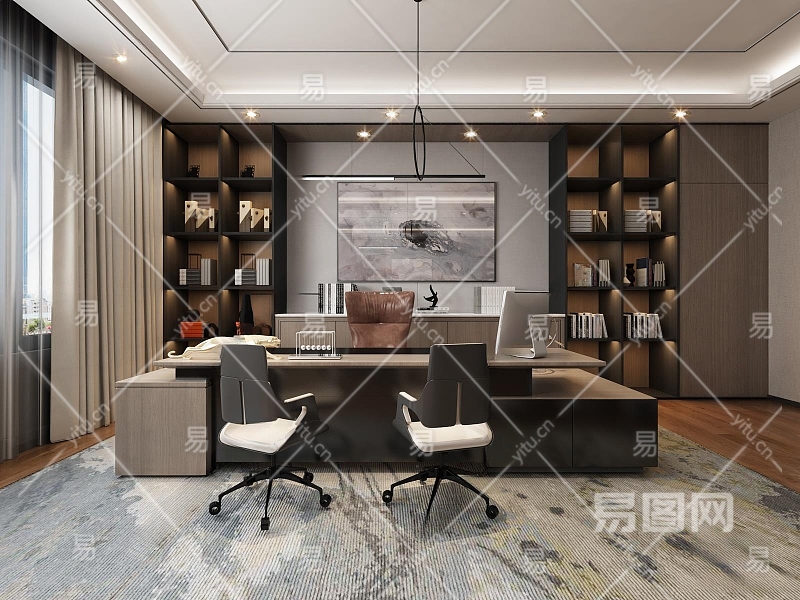 现代经理室3D模型下载