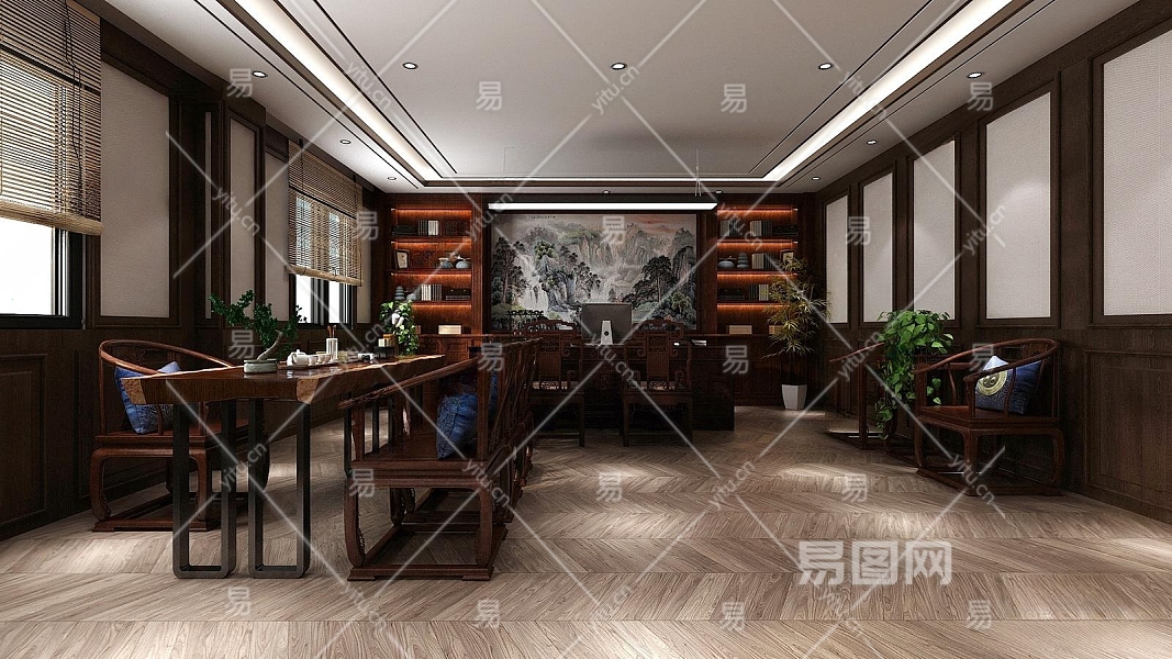 中式办公室3D模型下载