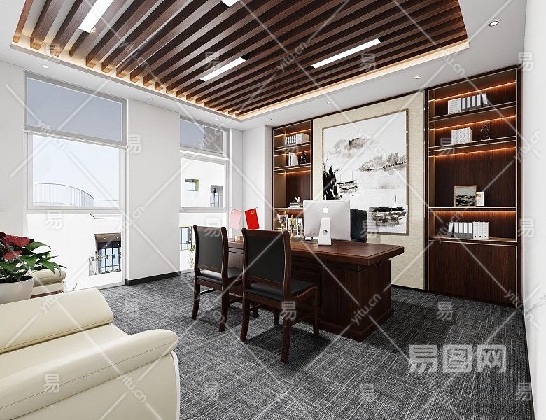 新中式经理办公室3D模型下载