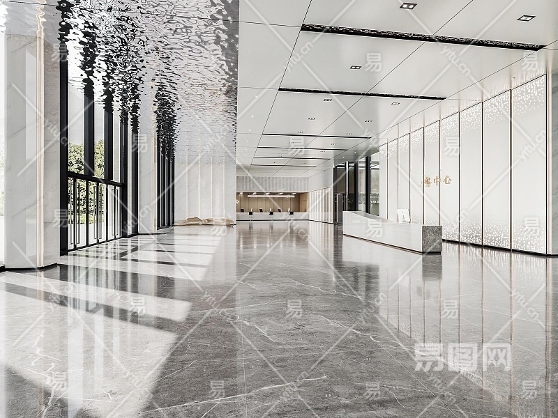 现代办公大厅3D模型下载