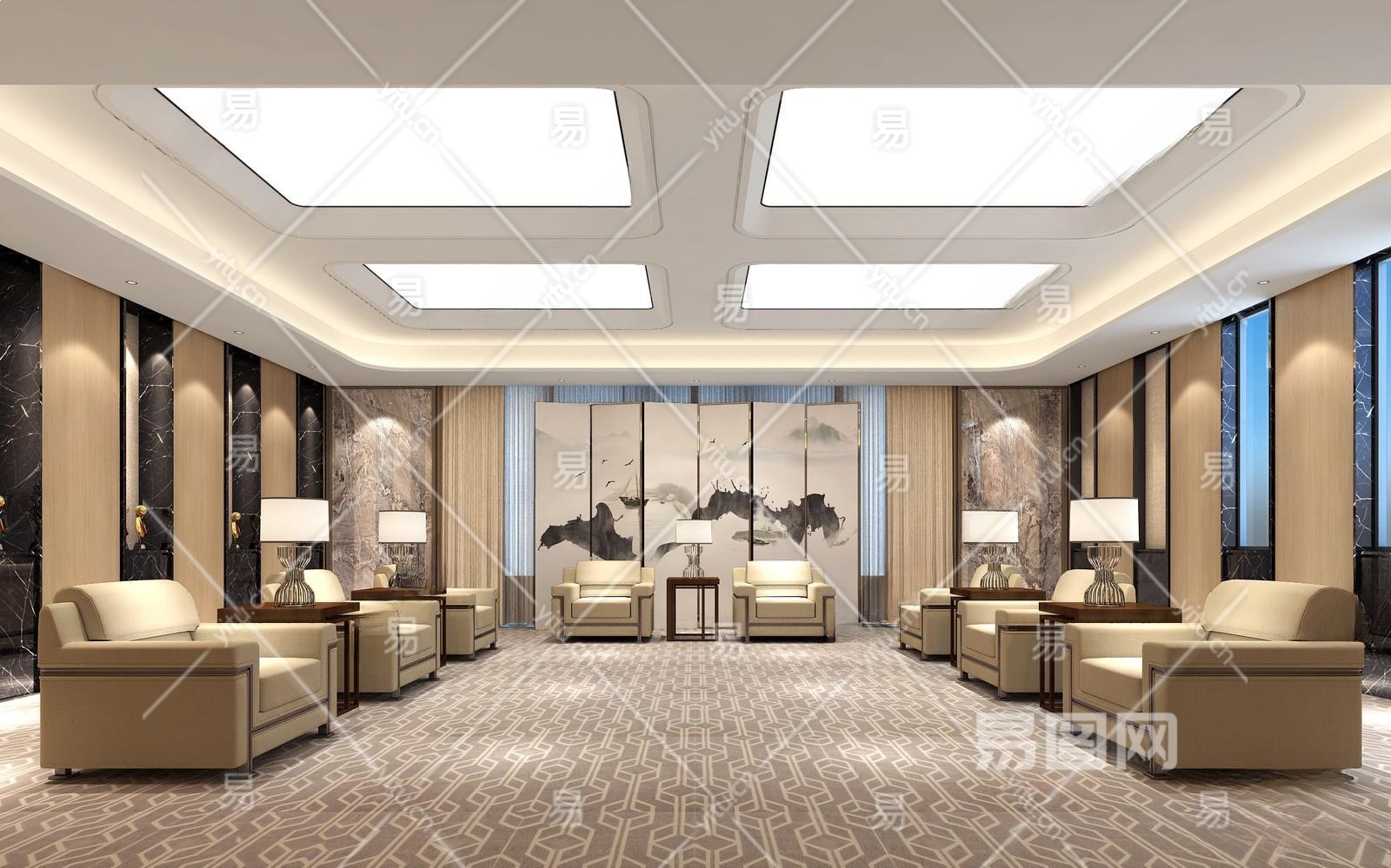 新中式商务接待室3D模型下载
