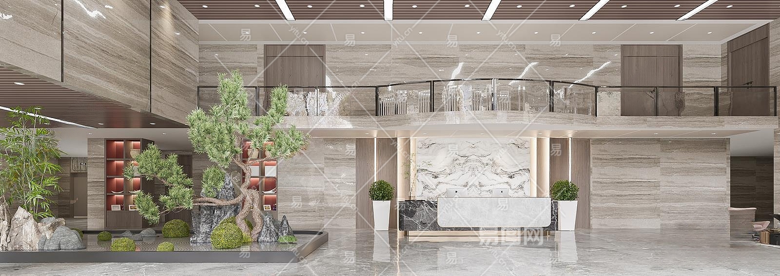 新中式公司大堂3D模型下载